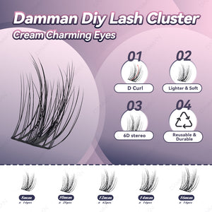 DAMMAN 6D DIY Lash Cluster Kit 4 Pieces Natural Lash Clusters D Curl Kit
