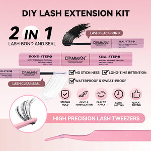 DAMMAN DIY Lash Cluster Kit D Curl Lash Cluster with Bond and Seal and Tweezers
