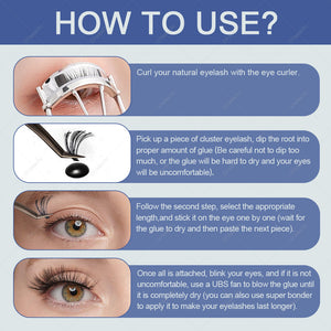Step 4: Press the eyelashes with your hands to make the false eyelashes fit the natural eyelashes. Use DAMMAN 2 in 1 Glue and brush SEAL (white brush head) directly onto the eyelashes.