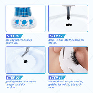 Step 4: Press the eyelashes with your hands to make the false eyelashes fit the natural eyelashes. Use DAMMAN 2 in 1 Glue and brush SEAL (white brush head) directly onto the eyelashes.